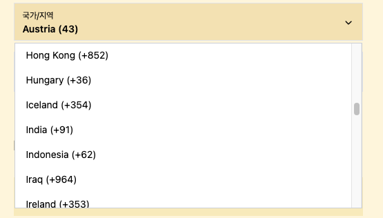 예를 들어, K 를 입력할 경우 K 로 시작하는 국가로 가고 다음 O 를 입력하면 KOREA 로 선택되어 져야 할 것 같습니다.