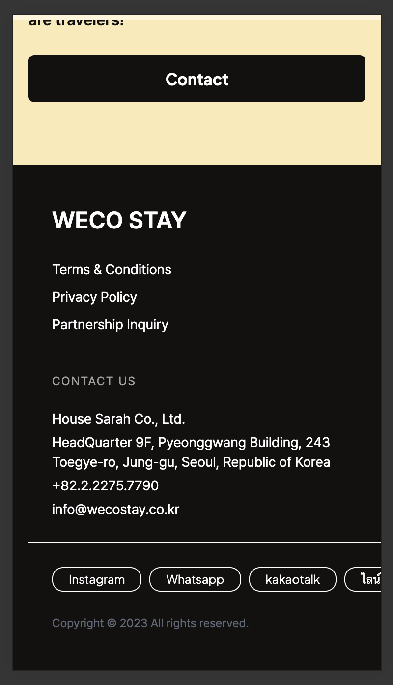 첨부이미지처럼 모바일의 경우 footer 소셜버튼으로 인해 overflow 가 되고 이에 따라 header 도 그 width 에 맞게 over 됩니다.