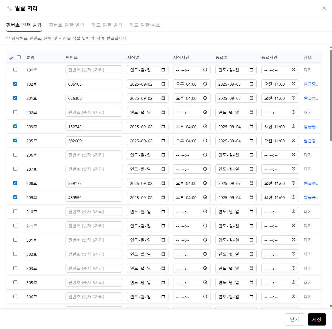 도어락 발급은 기존과 다른 방식으로 진행됩니다. 기존에는 한정된 바운더리에서 끝나길 기다리는 방식이었지만 현재는 async(비동기) 로 각가의 도어락이 독립적으로 발급되는 방식이라 끝나는 시점이 제 각각일 수 있습니다. 그래서 메세지창은 따로 없는 것이고 대신에 각 상태는 실시간으로 변경되서 보이므로 모니터링으로 보고 있으면 끝나는 시점에 자동으로 갱신되는 것을 볼 수 있습니다. 도어락 발급 자체는 지속적으로 테스트중입니다.